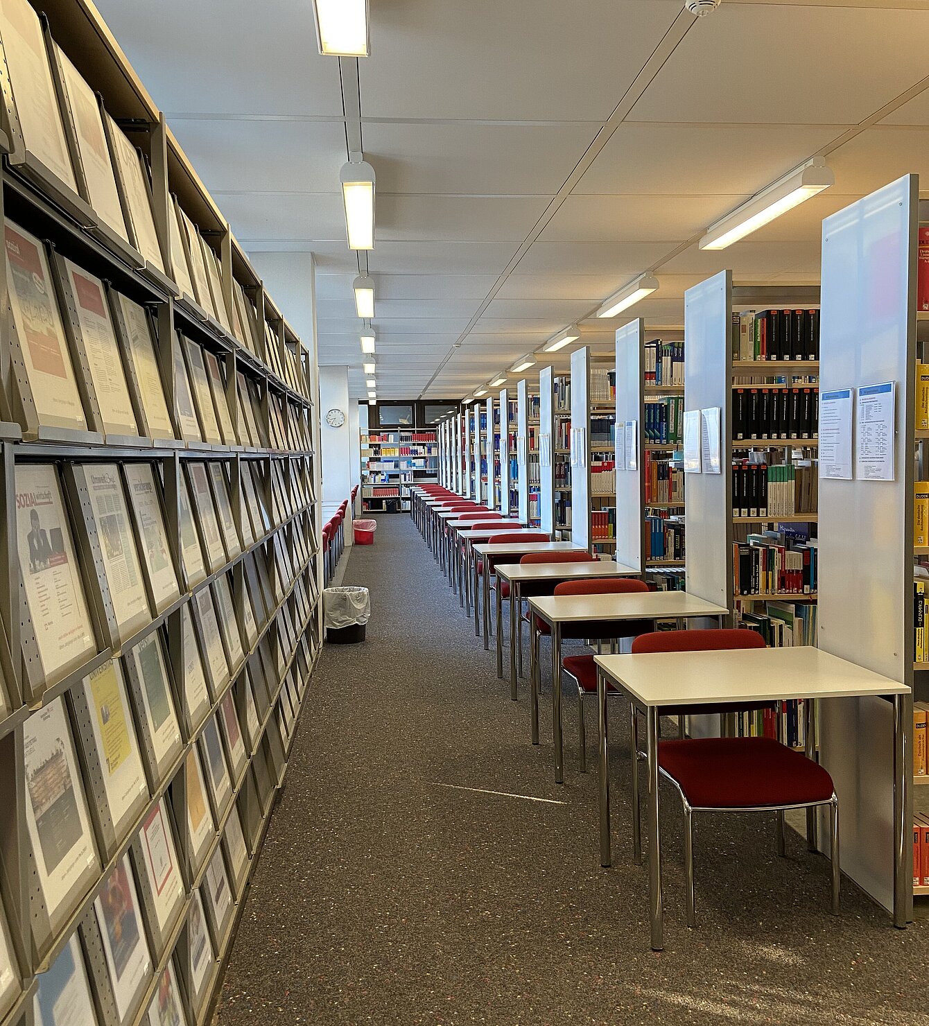 Die HVF-Bibliothek befindet sich in Gebäude 6 im 4. Stock.