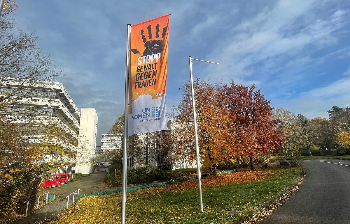 Am 25. November ist Orange Day – der Internationale Tag zur Beendigung der Gewalt an Frauen. Weltweit setzen die Vereinten Nationen an diesem Tag ein Zeichen gegen Gewalt an Frauen. Auch in Ludwigsburg engagieren sich die Gleichstellungsbeauftragten der Hochschulen und Akademien gemeinsam mit den Stabstellen von Stadt und Landkreis für dieses wichtige Anliegen. Auf dem Campus der Evangelischen Hochschule Ludwigsburg wird am Orange Day traditionell die Fahne hinter der orangefarbenen Bank gehisst. Mit Grußworten von Kristina Wolff und Cynthia Schönau (Gleichstellungsbeauftragte Stadt und Landkreis), Andrea Dietzsch (Rektorin der Evangelischen Hochschule) und Diana Hassel (Frauenbeauftragte der Stuttgarter Neckartalwerkstätten) wird ein sichtbares Zeichen der Solidarität gesetzt. Auch die HVF hisst anlässlich des Tages die orangefarbene Fahne.